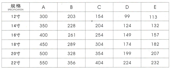 規格尺寸:10寸~24寸