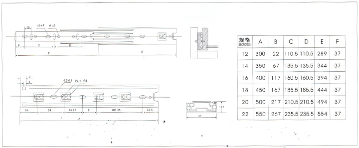 富特龍五金:35系列三節鋼珠滑軌(FTL-3601不銹鋼三折滑軌)